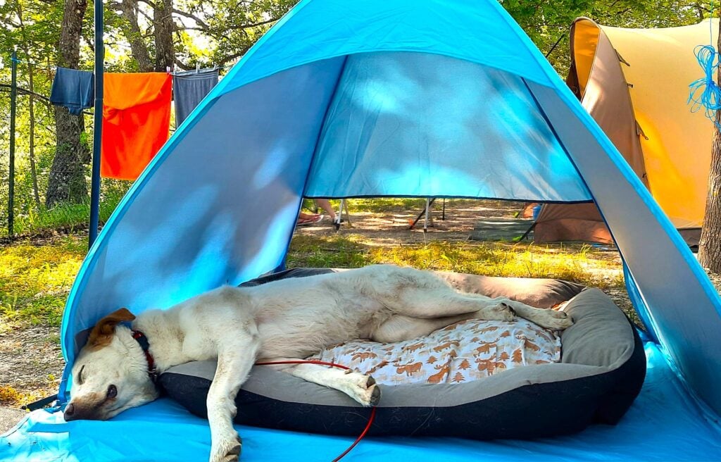 Dogs belong at campgrounds. People love seeing them. But loose dogs running up to other sites, chasing squirrels, jumping on kids, or pooping behind someone’s tent is how problems start.