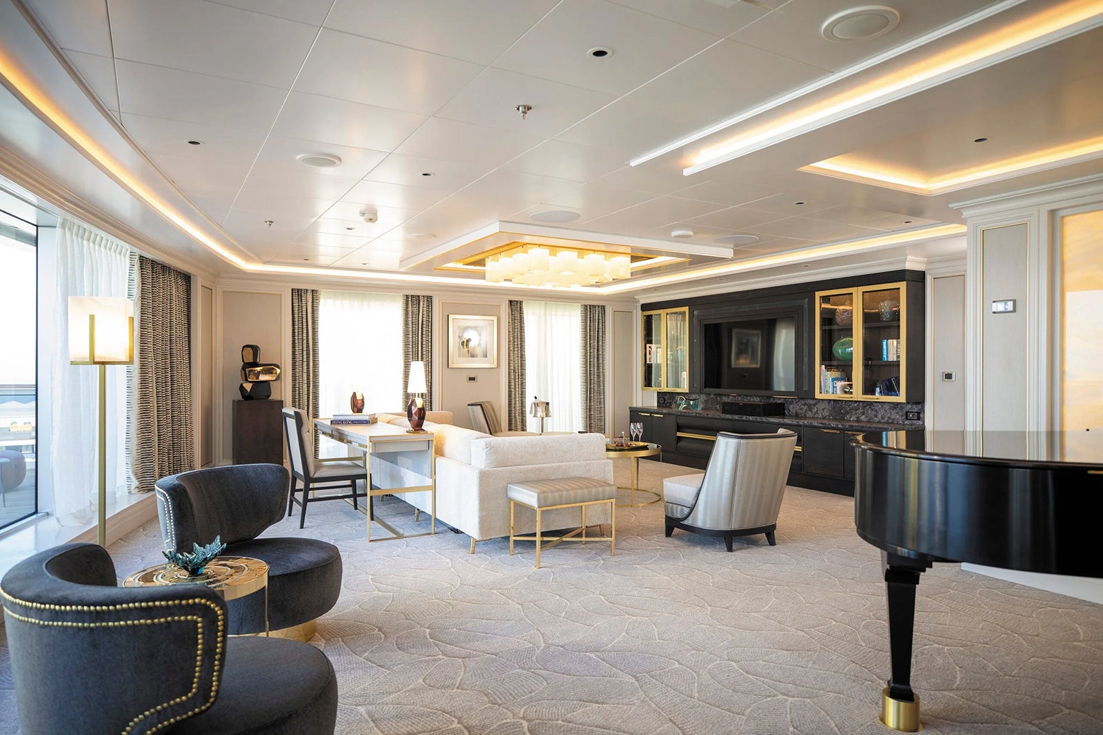 The Regent Suite has a massive living room area, among other features. REGENT SEVEN SEAS CRUISES