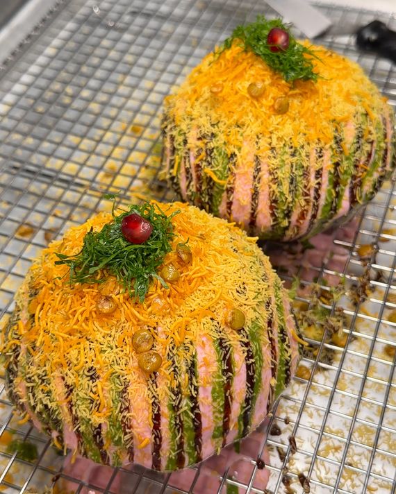 The no-peeking restaurant entrance on Broadway; Instagram-friendly raj kachori chaat; kheer, a creamy dessert pudding with bananas, dark chocolate, an…