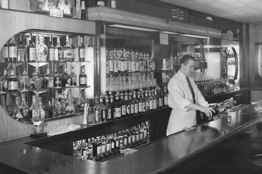 Michael Donohue, father of current owner Maureen Donohue-Peters, working at the bar when it opened in 1950.
