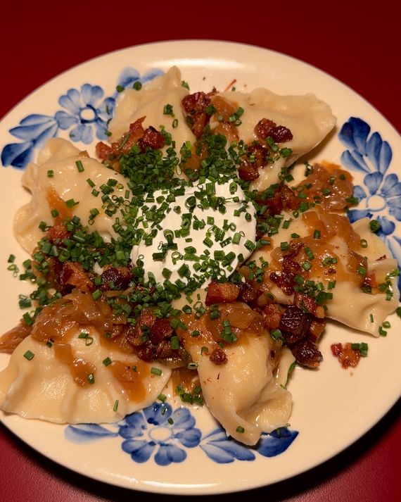 I found Pierogi Boys easy to love: charming, tasty, unself-serious, and filling, if not to the gut-busting extremes of yore. Kinczyk and Poluchowicz supervise the place, while the kitchen is overseen by Matt Oliver, a longtime local chef new to the cuisine when he came onboard. (The Boys gave him a stack of cookbooks, a trip to Poland, and a month to get up to speed.) The cooking is more contemporary than you or Babcia may expect. We are in a long designer-cabbage moment, with brand-name-drops of Caraflex and Sugarcone on menus and in bougier produce aisles around town, but one thing Poles don’t need to be told about is brassicas. Here, they abound — piquant sauerkraut in mushroom pierogi and sweetly grassy Brussels sprouts melted with onions and cream served over long rickrack-edged noodles for a take on the comfort food known as łazanki, a sort of collapsed lasagna.