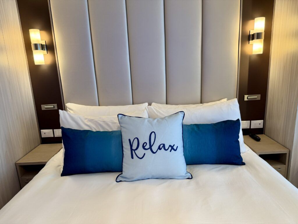 Similar to newer ships in the fleet, Star Princess cabins feature light wood finishes and pops of nautical blue colors. The rooms feel inviting, modern, and upscale.