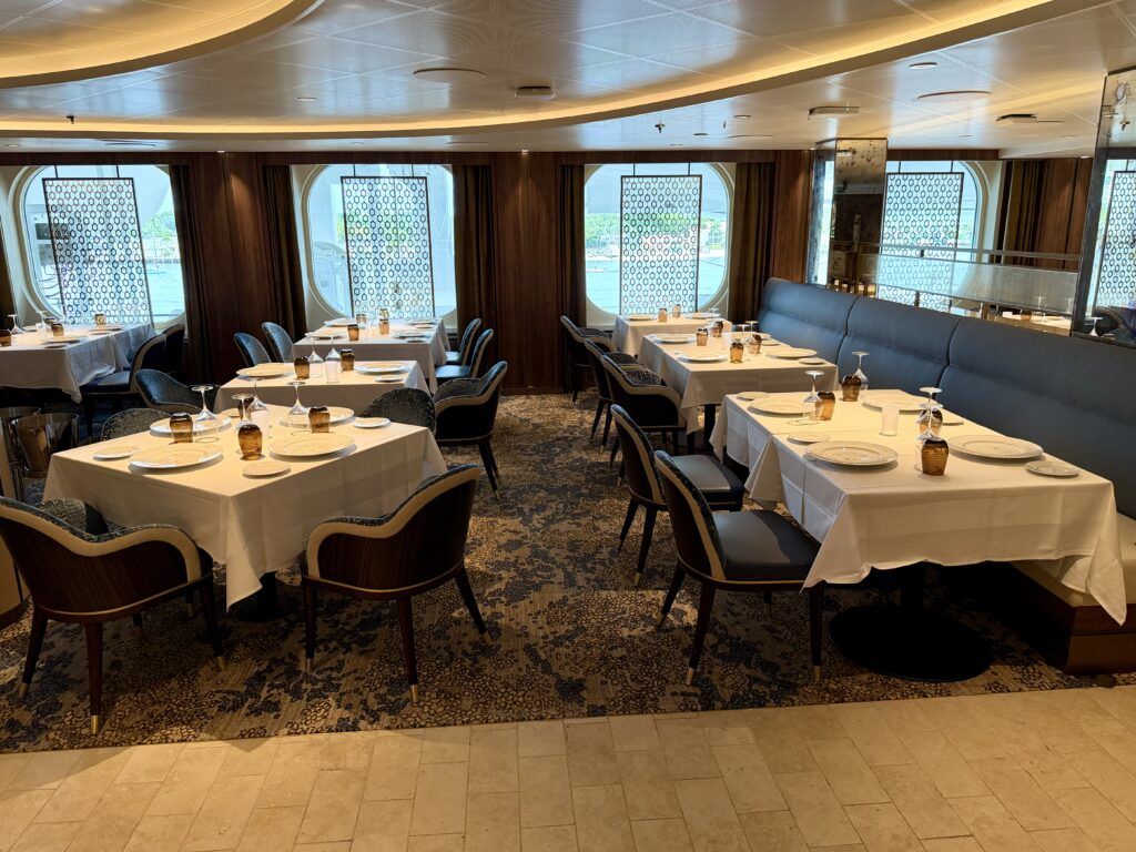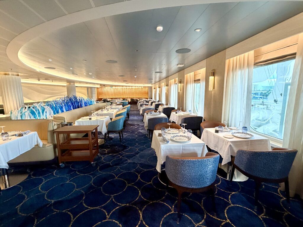 When booking a Sanctuary Collection stateroom, you also get access to the Deck 8 Sanctuary Restaurant. With open seating, guests can dine when they want. This restaurant serves a rotating menu, with a couple of upscale options not available in the other two main dining rooms.