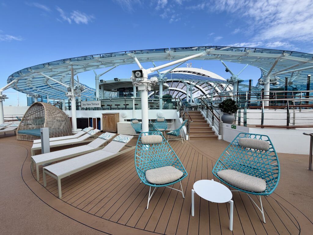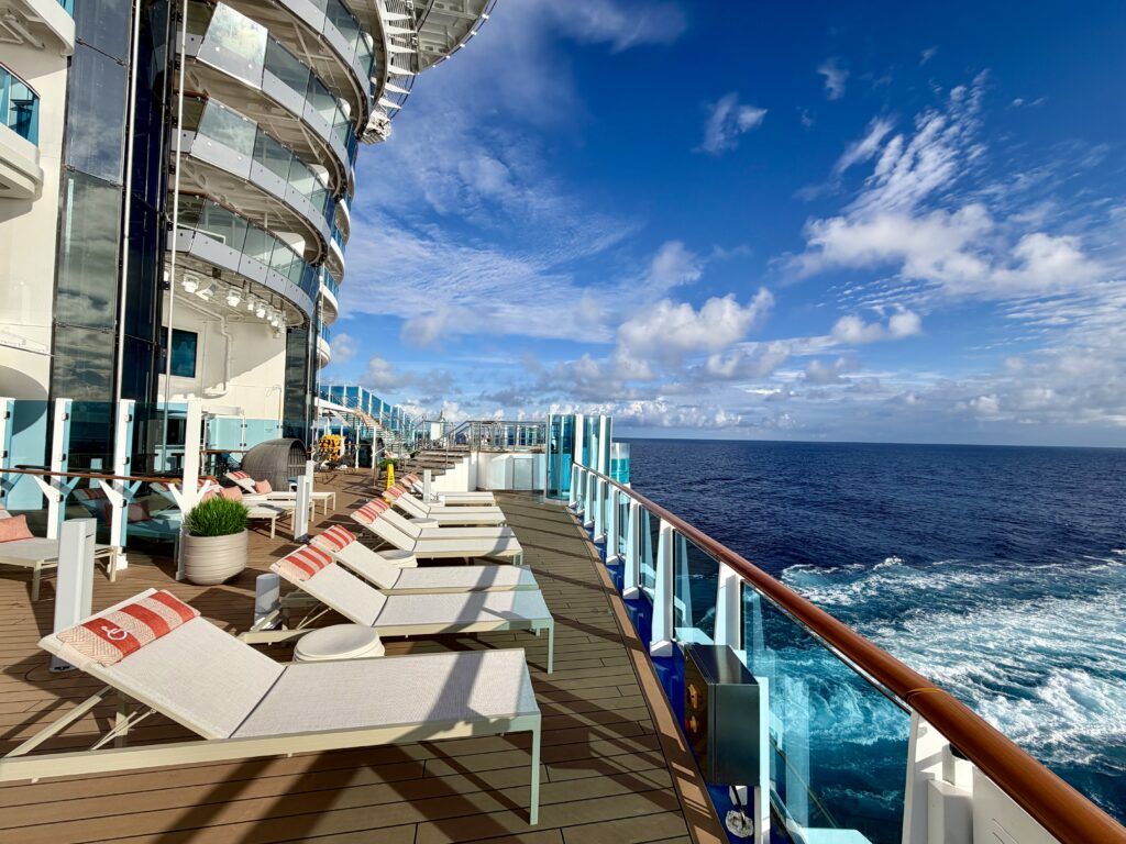 While smaller, the Wake View Terrace had a uniquely chill vibe. Down on Deck 8, this tucked-away space has an infinity pool overlooking the ship’s wake. With the nearby Wake View Bar, it was another option for catching some sun during our sailing.