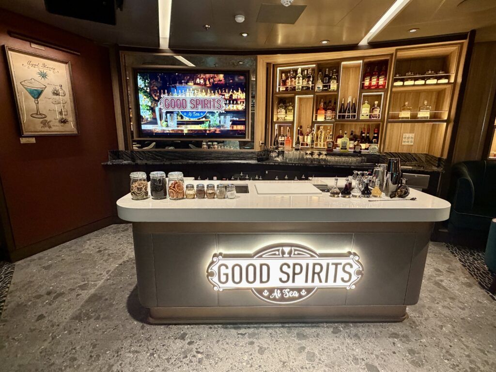 One of our favorites is Good Spirits at Sea. The global menu offers handcrafted cocktails from around the world. At night, you can learn more about these specialty drinks as you watch master bartenders expertly prepare select beverages.