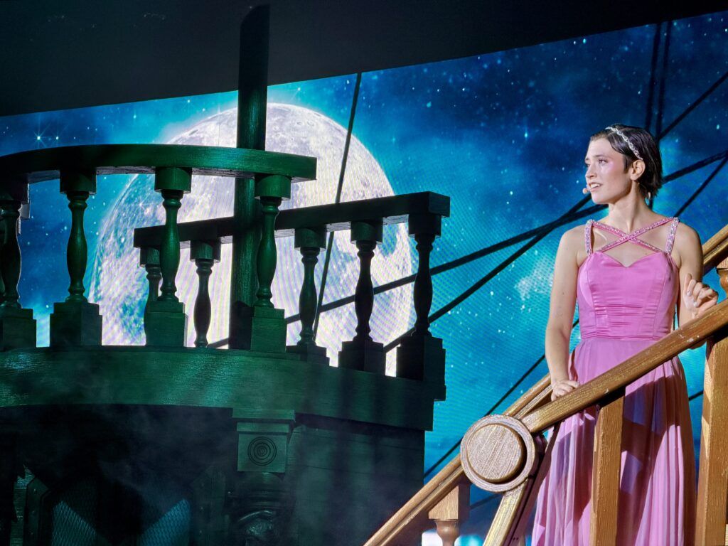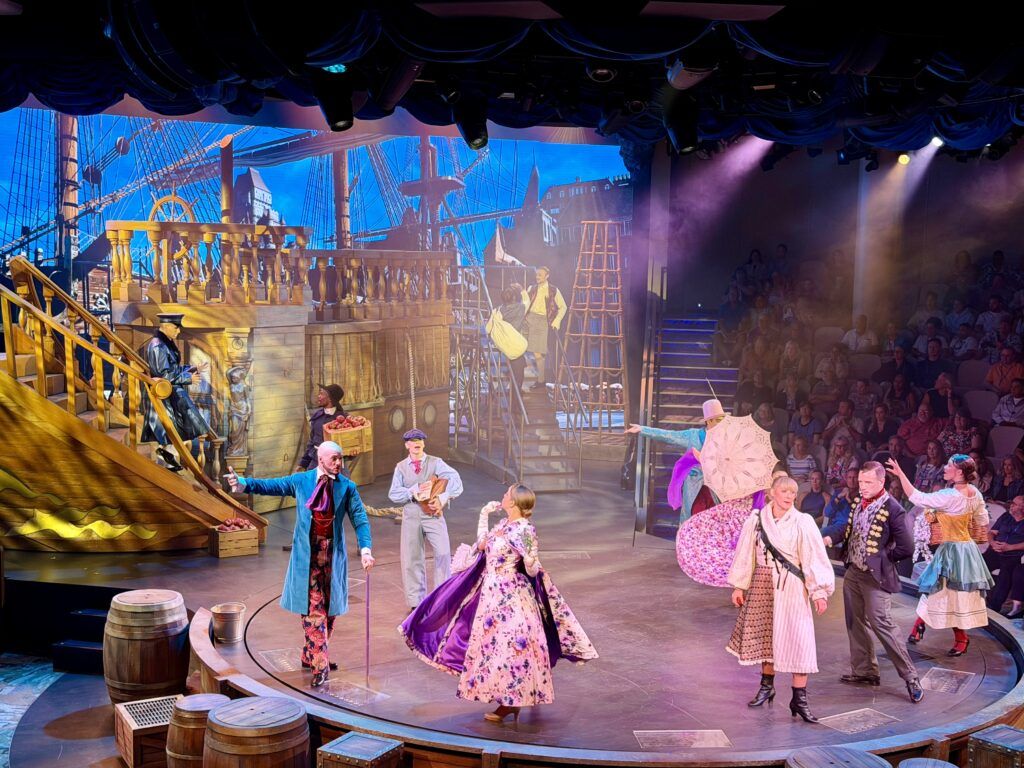 In Meridian, you step aboard the Celestial. This musical love story is filled with adventure in a critique of high society and individual freedoms. Meridian is definitely Princess Cruises’ most technologically advanced theater show, running at slightly over an hour. It is a step in the right direction, featuring an immersive stage, set pieces, and costumes. However, we did think the plot borrowed quite a few elements from the movie Titanic.