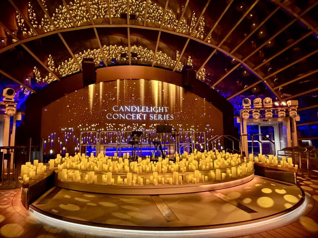 Up on Deck 17 in the Dome, Star Princess features the Princess Cruises Candlelight Concert Series. Hosting a variety of musical performances, the Dome transforms into a tranquil, glowing haven for live music. While we wouldn’t necessarily consider this a show, it is a rather unique live music experience. Given the size, these candlelight concerts definitely fit the space better than the previous cirque-style shows that debuted on Sun Princess.