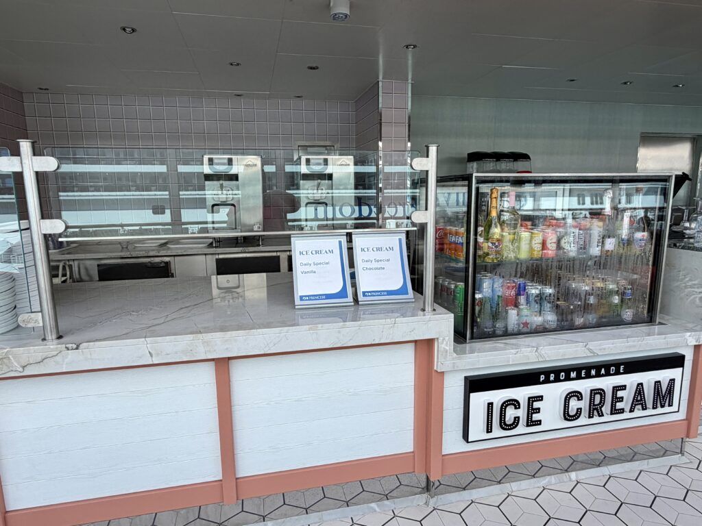 Up on Deck 17, there is Coffee & Cones for a caffeine fix, just a few steps from the pool. However, no food items are included here, except for soft-serve ice cream later in the day.