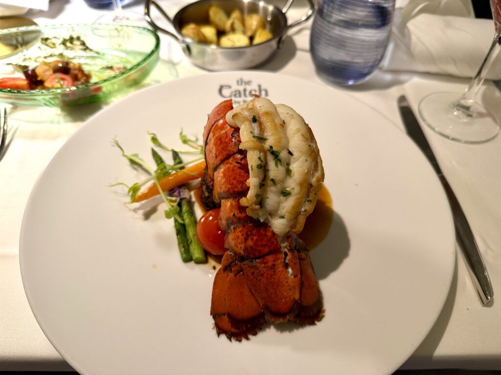 On the last night of the cruise, we dined at The Catch by Rudi. This seafood-centric restaurant offers a wide selection. From fried calamari to shrimp cocktail to freshly caught fish, this is some of the freshest seafood on any cruise ship. I went with the sea and shore featuring a bold filet and a lobster tail.