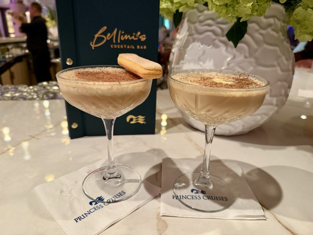 The ship’s cocktail bar, Crooners, on Deck 8 off the Piazza, has been redesigned. The piano is in a new location, opening up the space and giving you more opportunities to enjoy the drinks and music here. Also off the Piazza is Bellini’s on Deck 7. Yes, the menu features champagne and bubbly, plus other unique cocktails. Whatever you do, you have to try one of the Tiramisu Collection cocktails.