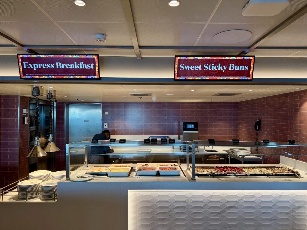 During the morning and afternoon, the Americana Diner is an additional buffet all the way aft on Deck 9.  At night, this venue turns into a casual sit-down restaurant. The Americana Diner serves up classic comfort food, including breakfast for dinner.