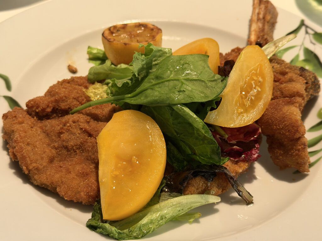 The burrata was a rich and light starter. My antipasto plate was equally satisfying. The table-side topped chicken parmesan is an American-Italian classic that did not disappoint. The veal chop Milanese was a breaded, bone-in veal chop that rivals anything found in Boston’s North End. For dessert, the chef treated us to three scoops of gelato, along with what we had already ordered.
