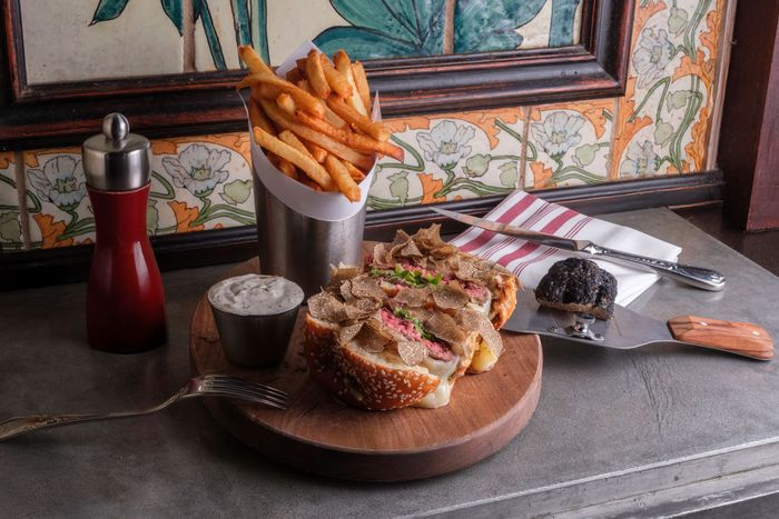 In fact, Boulud — whose luxury “DB” burger once bewitched this city — is trying his hand at the trend, too. At his Le Gratin, an after–9 p.m.–only Truffle Burger comes with a slab of fried pork belly and a blanket of shaved black truffle. And he’s debating a return for the DB burger in some form or another, even though the original restaurant that offered it has closed. “People all the time tell me, ‘You used to have a restaurant, and every time I would go there, I’d have the burger with the truffles,’’’ Boulud says. (The DB Burger’s signature indulgence was that it was stuffed with short rib and foie gras, but guests were also given the opportunity to add two layers of Périgord truffles, or to make it “Super Royale” with four layers of truffles; truffles are a recurrent theme in the Boulud Gastronomic Universe.) “I think I’m going to start it again. You can just maybe tease it and say, ‘Daniel will be starting a limited edition sometime in the fall.’” Now he just needs to figure out which of his restaurants would make sense as a new home. “It’s a lot of work,” he says, “and I don’t know which chef would want to take it.”